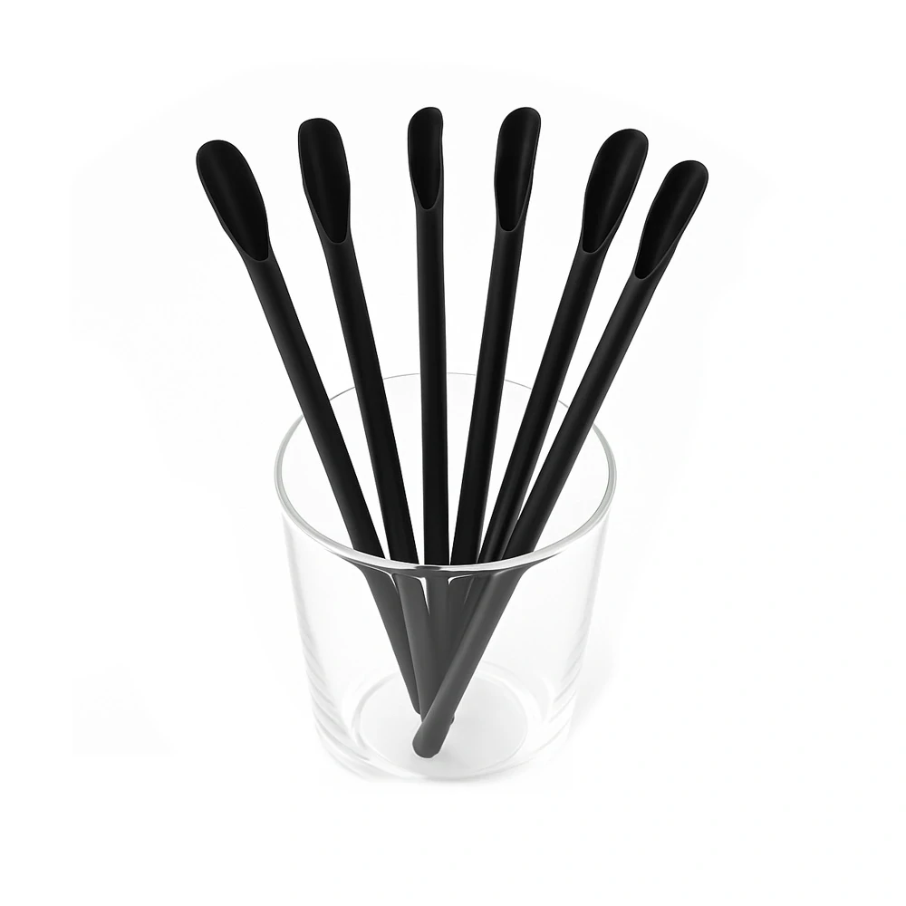Slamky s lyžičkovým koncom z PLA ČIERNA 6x210mm / 250 ks